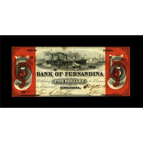 <B>Fernandina, FL- Bank of Fernandina</B></I> $5 Feb. 1, 1860 G2a Freeman 4<BR> A much higher grade than normally seen example from this much collected bank, this with vivid red protector ends and fully signed and issued. Sharp <B>Very Fine.</B></I><BR><BR><b>Shipping:</b> Coins & Currency (<a target="_blank" href="http://www.heritageauctions.com/common/shipping.php">view shipping information</a>)