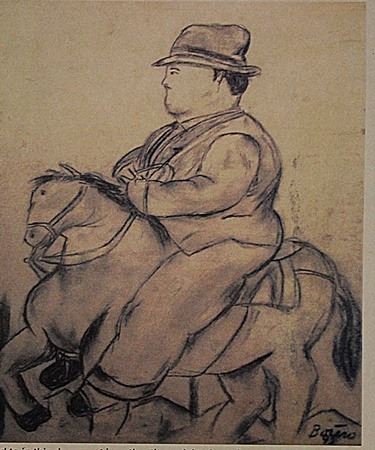 in the manner of Fernando Botero "El Jinete" graphite on paper circa.1992, private collection Approx. 32x25cm. in the manner of Fernando Botero is a Colombian artist known for creating bloated, oversized depictions of people, animals and elements of the natural world. Botero left matador school to become an artist, displaying his work for the first time in a 1948. His subsequent art, now exhibited in major cities worldwide, concentrates on situational portraiture united by his subjects' proportional exaggeration.