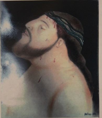 in the manner of Fernando Botero "Prisionero Con Espinas" pastel on paper circa.2002, private collection Approx. 50x35cm. in the manner of Fernando Botero is a Colombian artist known for creating bloated, oversized depictions of people, animals and elements of the natural world. Botero left matador school to become an artist, displaying his work for the first time in a 1948. His subsequent art, now exhibited in major cities worldwide, concentrates on situational portraiture united by his subjects' proportional exaggeration.