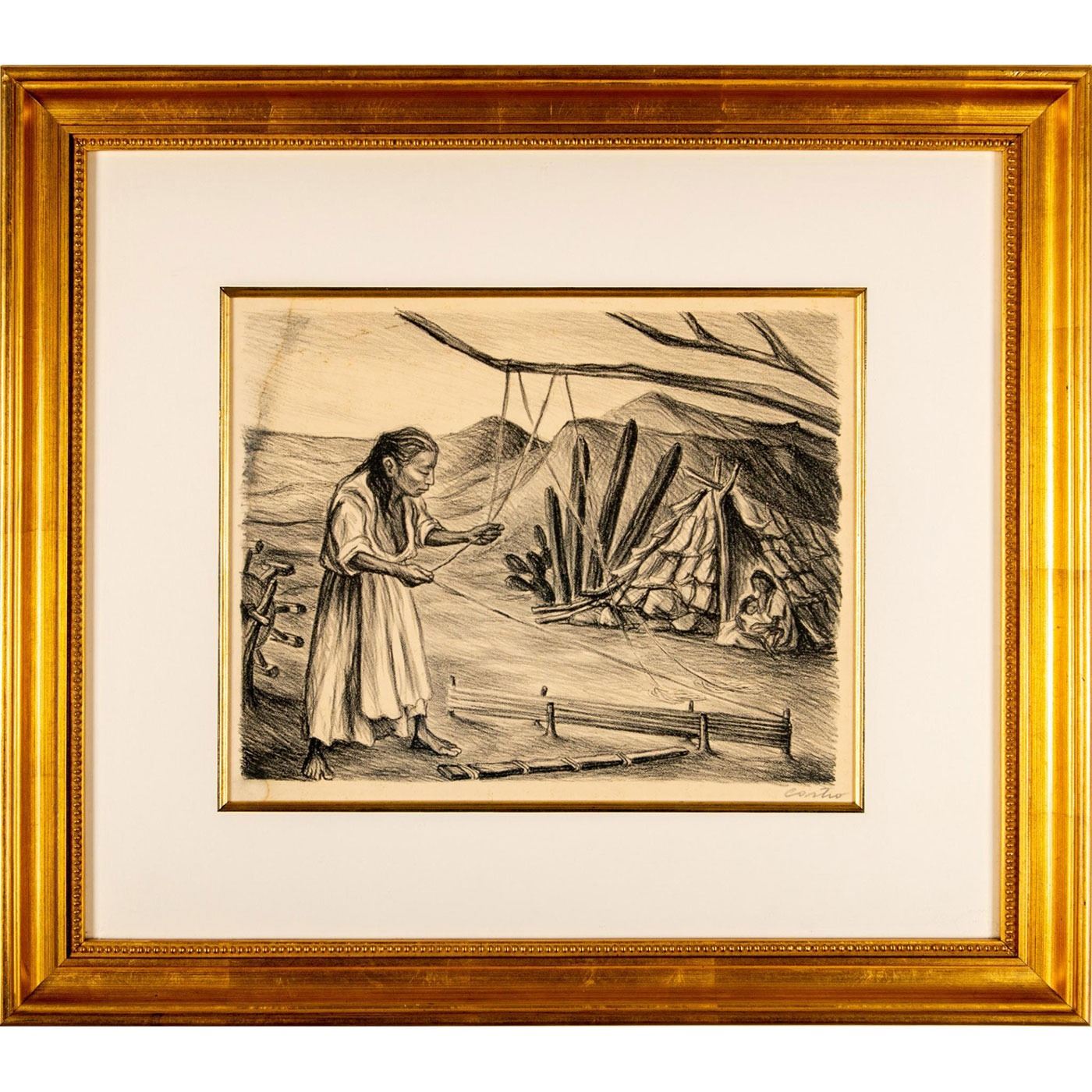 Fernando Castro Pacheco (Mexican 1918-2013) Lithograph, Working with Ixtle