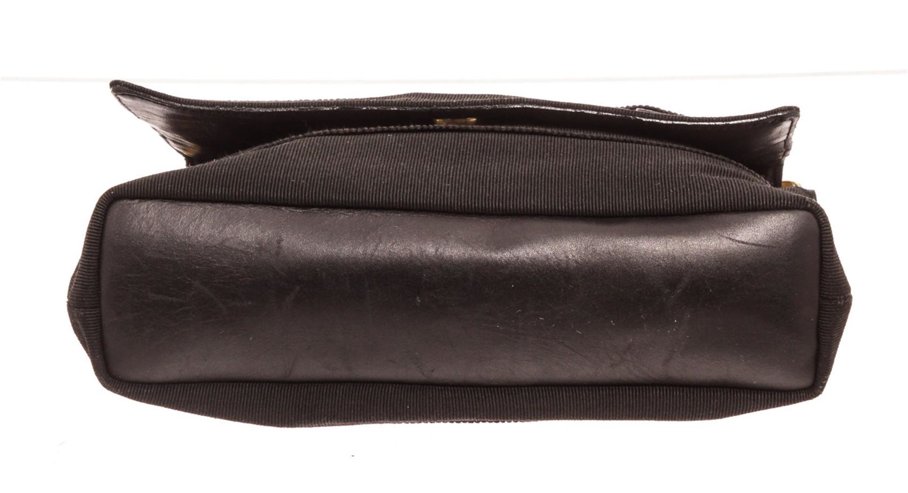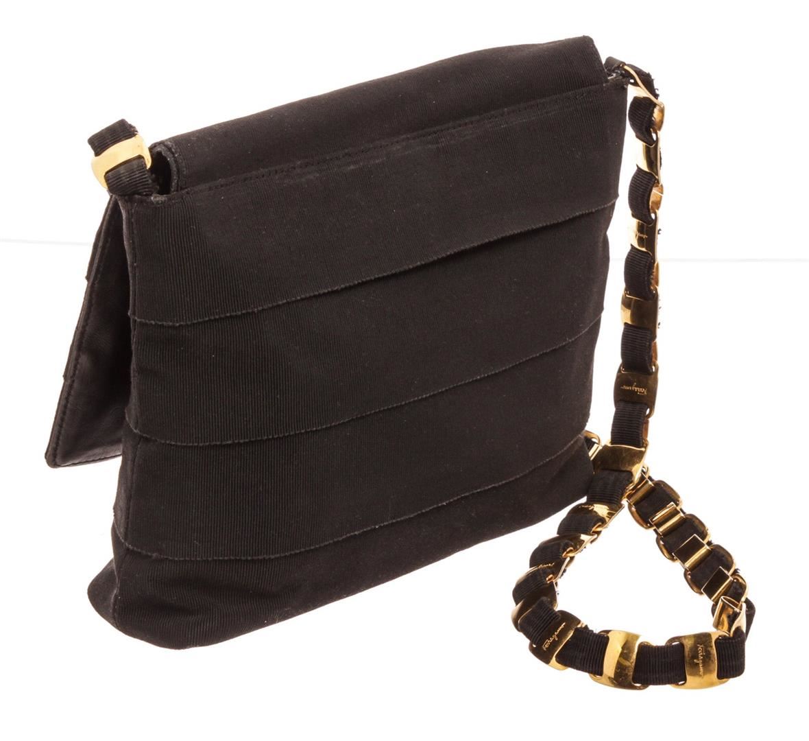 Ferragamo Black Canvas Chain Shoulder Bag with silver-tone hardware, single shoulder straps, snap closure at front closure.