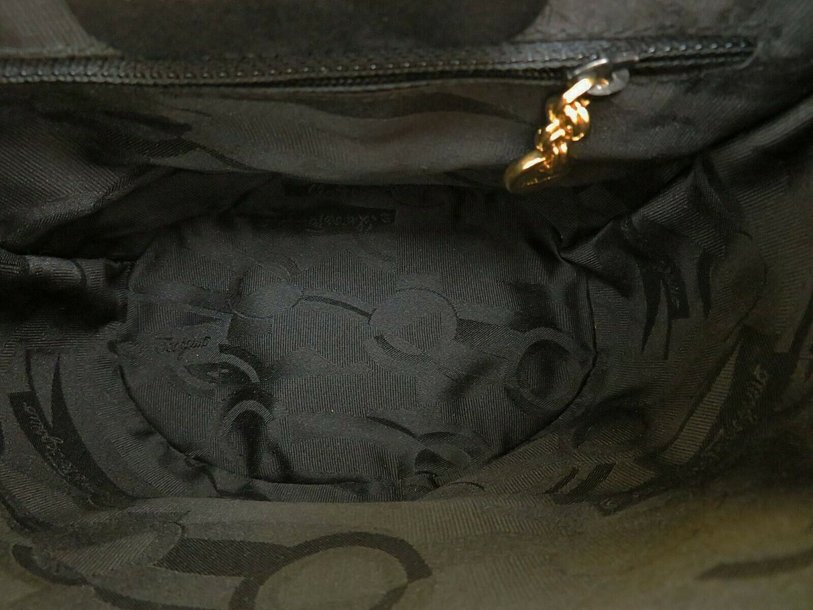 Description: SALVATORE FERRAGAMO Vara Ribbong Yellow Suede Backpack Bag. One outside zippered pocket.