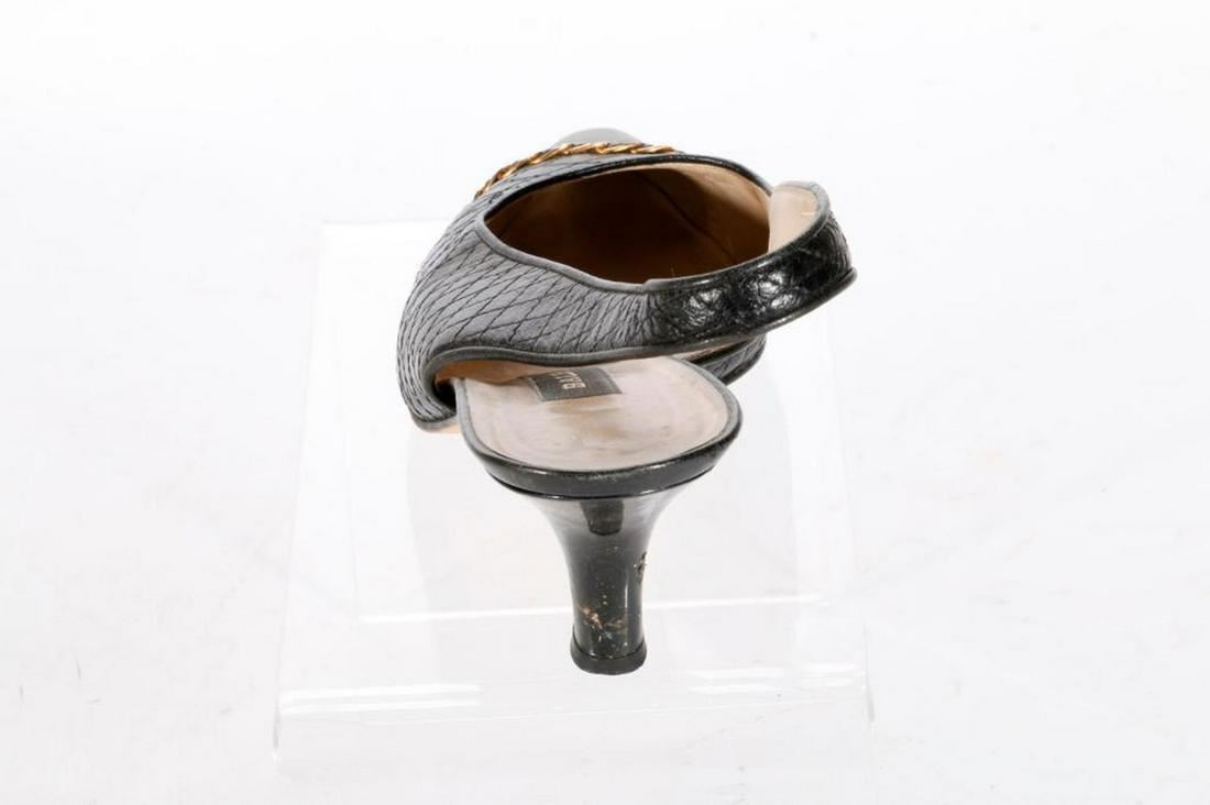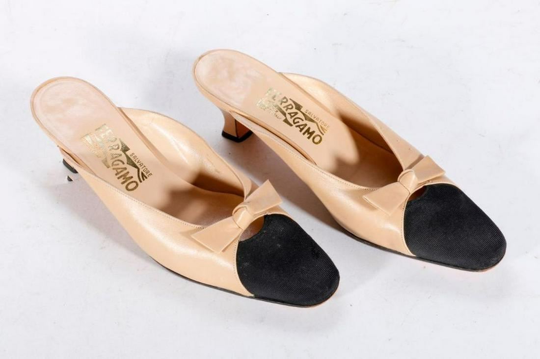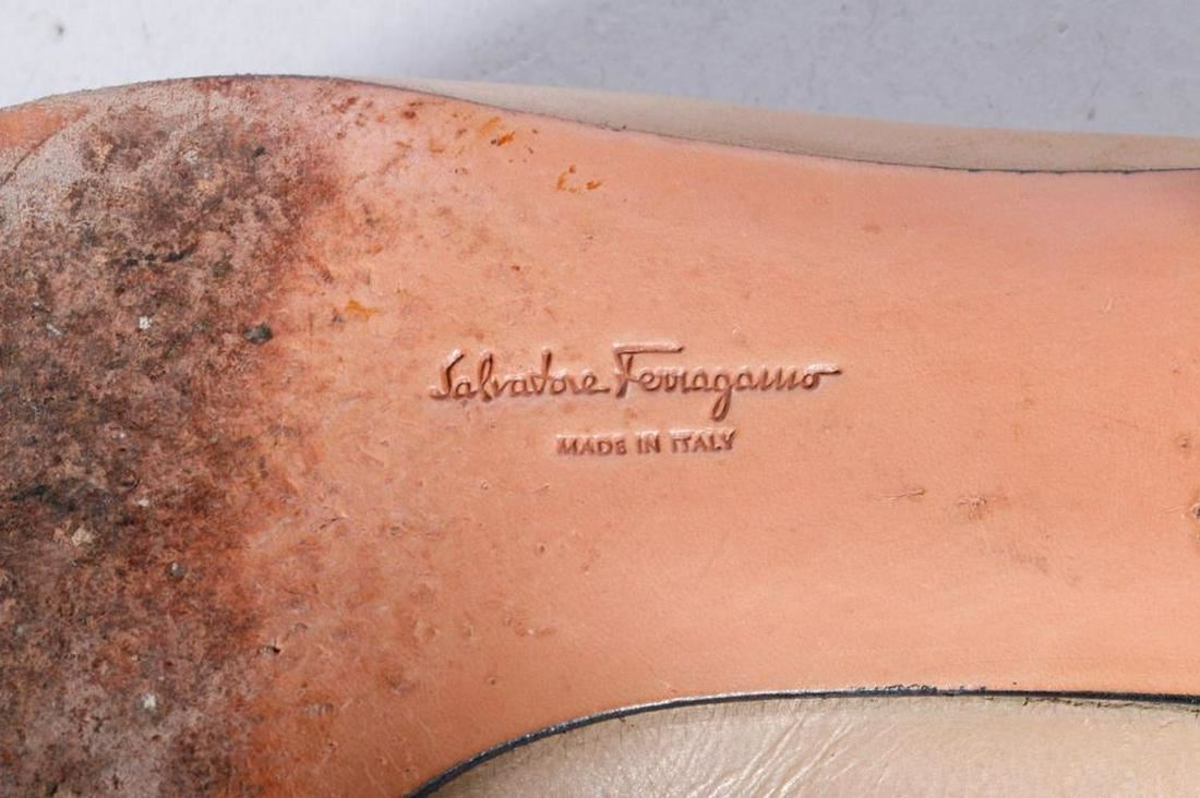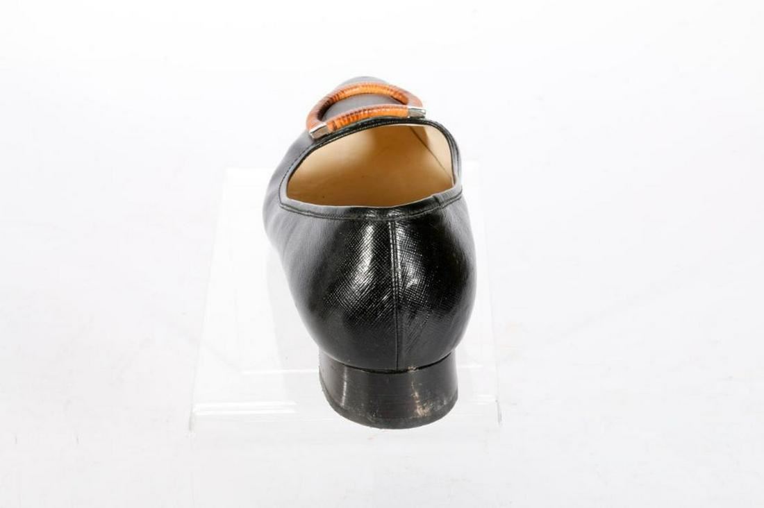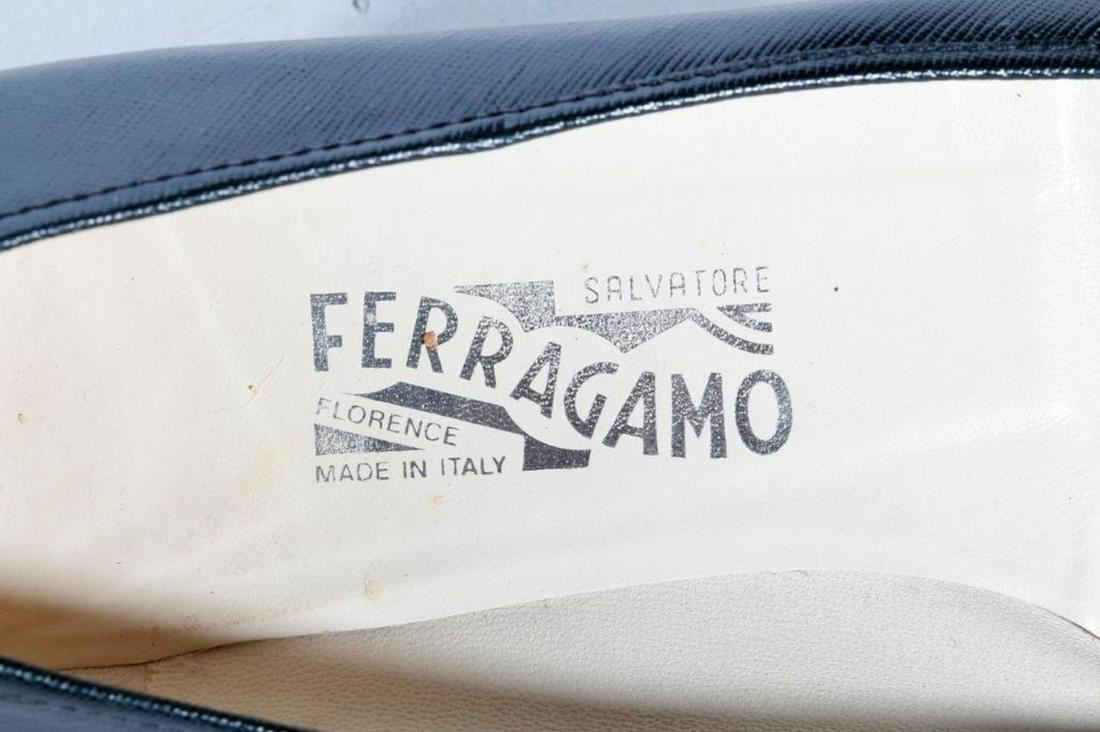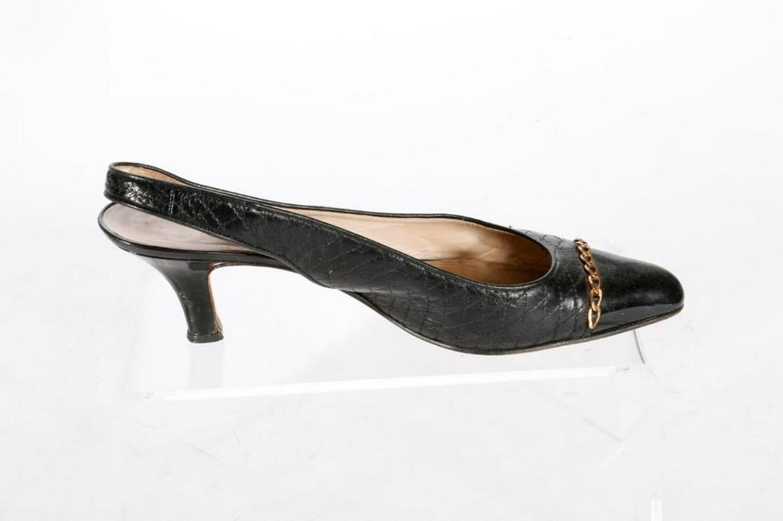 Two pairs of Ferragamo: (1) black toe shoe (US size 10 B). (2) Black patent leathe shoes with buckle. Bally quilted black leather slingback shoes with black patent toe (US size 10 M) Items are sold as is. Please inquire about condition if not otherwise stated.