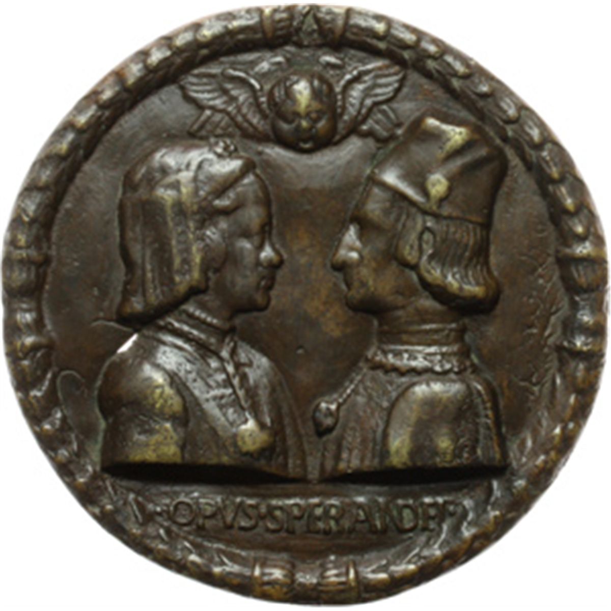 Monete e Medaglie di Zecche Italiane. Ferrara. Ercole I d'Este (1471-1505). Medaglia uniface 1475 Ercole I ed Eleonora d'Aragona. Poll.85. Arm I, 68, 21. AE. mm. 111.00 Inc. Sperandio (1425-1504). R. BB.