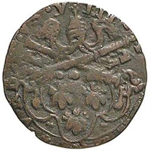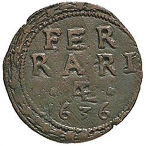 Ferrara. Urbano VIIII (1623-1644). Quattrino 1636 chiavi con fiocchi e cordoni. M.247 var I. AE. Bel BB.