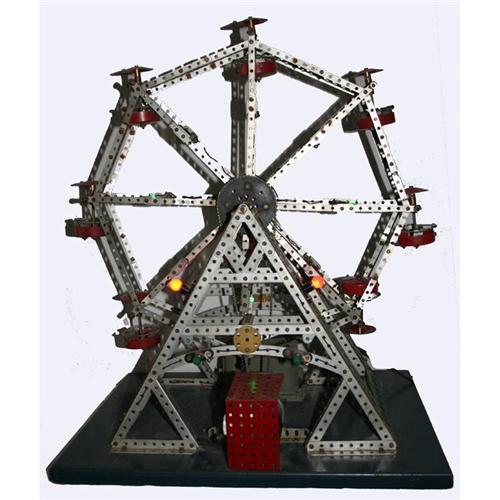 Ferris Wheel constructed from Erecto Set - Electrified - Powered by a Meccano Ltd. Transformer made in England.  Wheel revolves and lights illuminate.  Approximately 21" H.