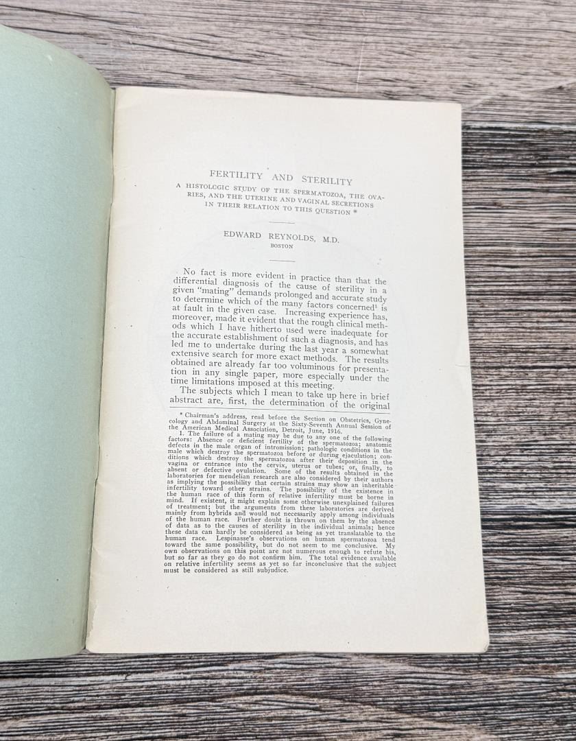 A Histological Study of the Spermatozoa, the ovaries, and the uterine and vaginal secretions in their relation to this question. Edward Reynolds. 1916