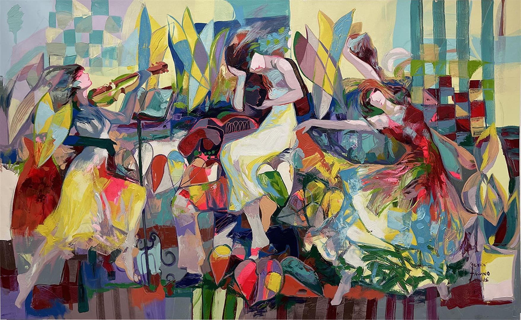 Amazing original oil on canvas. Hand signed by artists. Artwork comes with a certificate of authenticity. This artwork comes rolled. Size 80x48"