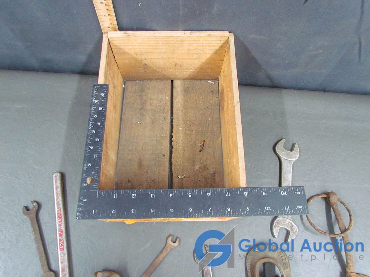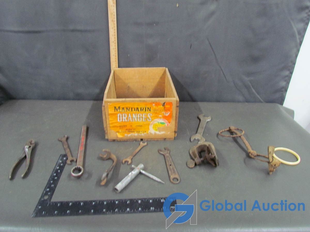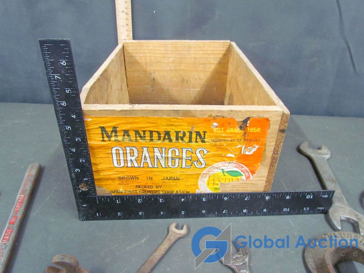"Festive" Mandarin Orange Box & Vintage Misc. Tools, Etc.