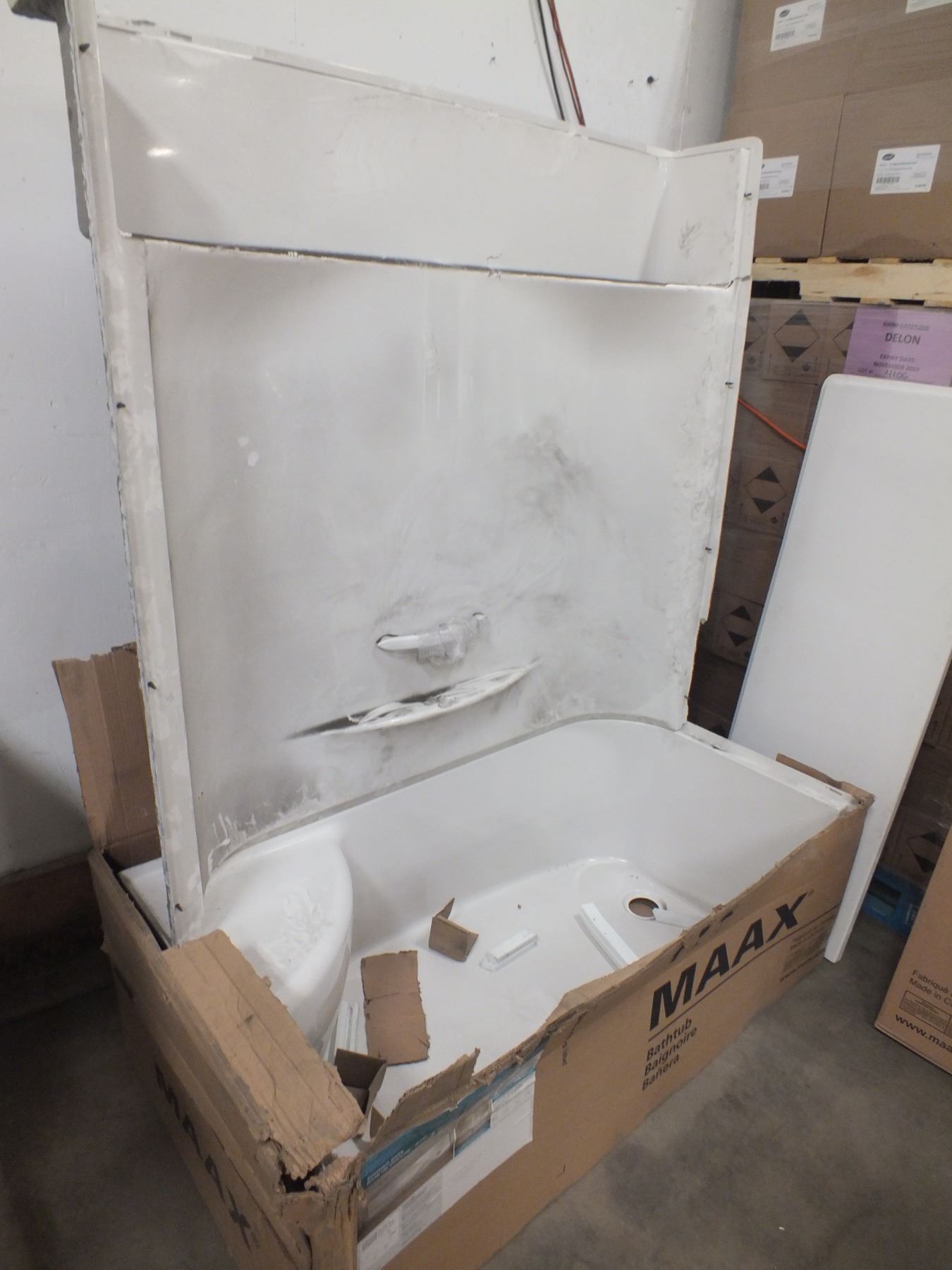Fiberglass Tub & Shower Enclosure, some damage as seen in the photos....freight claim...new