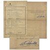 Fidel Castro document signed as President of Cuba. Dated April 1984, printed document on Republic of Cuba stationery is signed on verso, ''Fidel Castro'' in blue ink beneath a typed postscript. Document in Spanish pertains to a handicapped Revolutionary; Castro's postscript is his personal endorsement for aid to the man in question. Measures 8.25'' x 12.5''. Creasing and paperclip imprint to top and bottom, else near fine. Accompanied by an envelope bearing the seal of the Republic of Cuba.