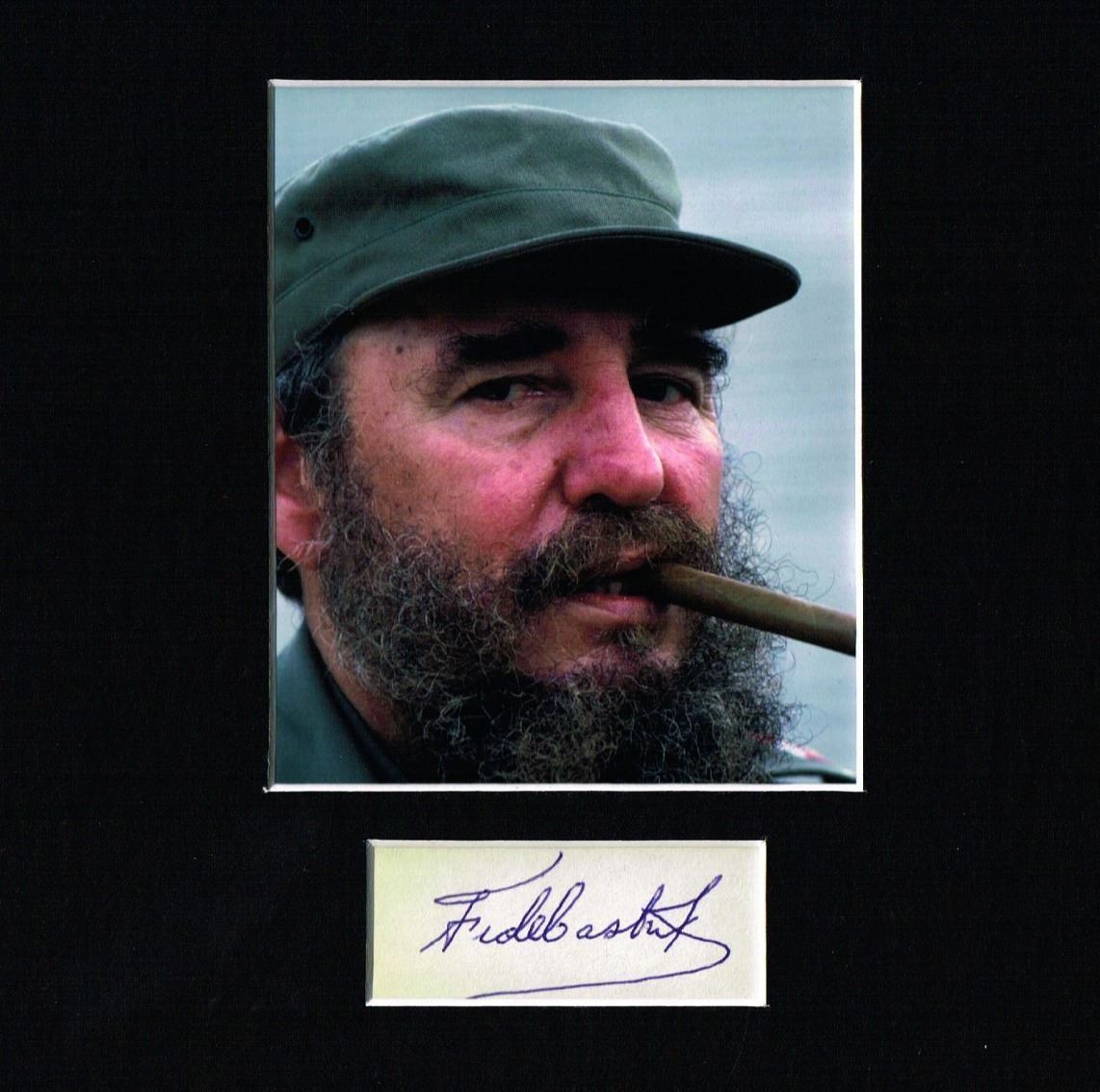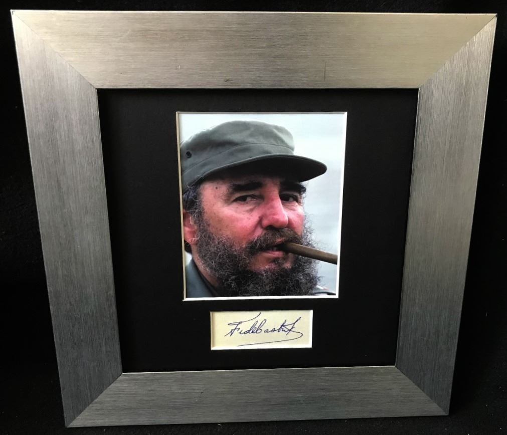 Fidel Castro's autograph, mounted and framed. Supplied with coa.