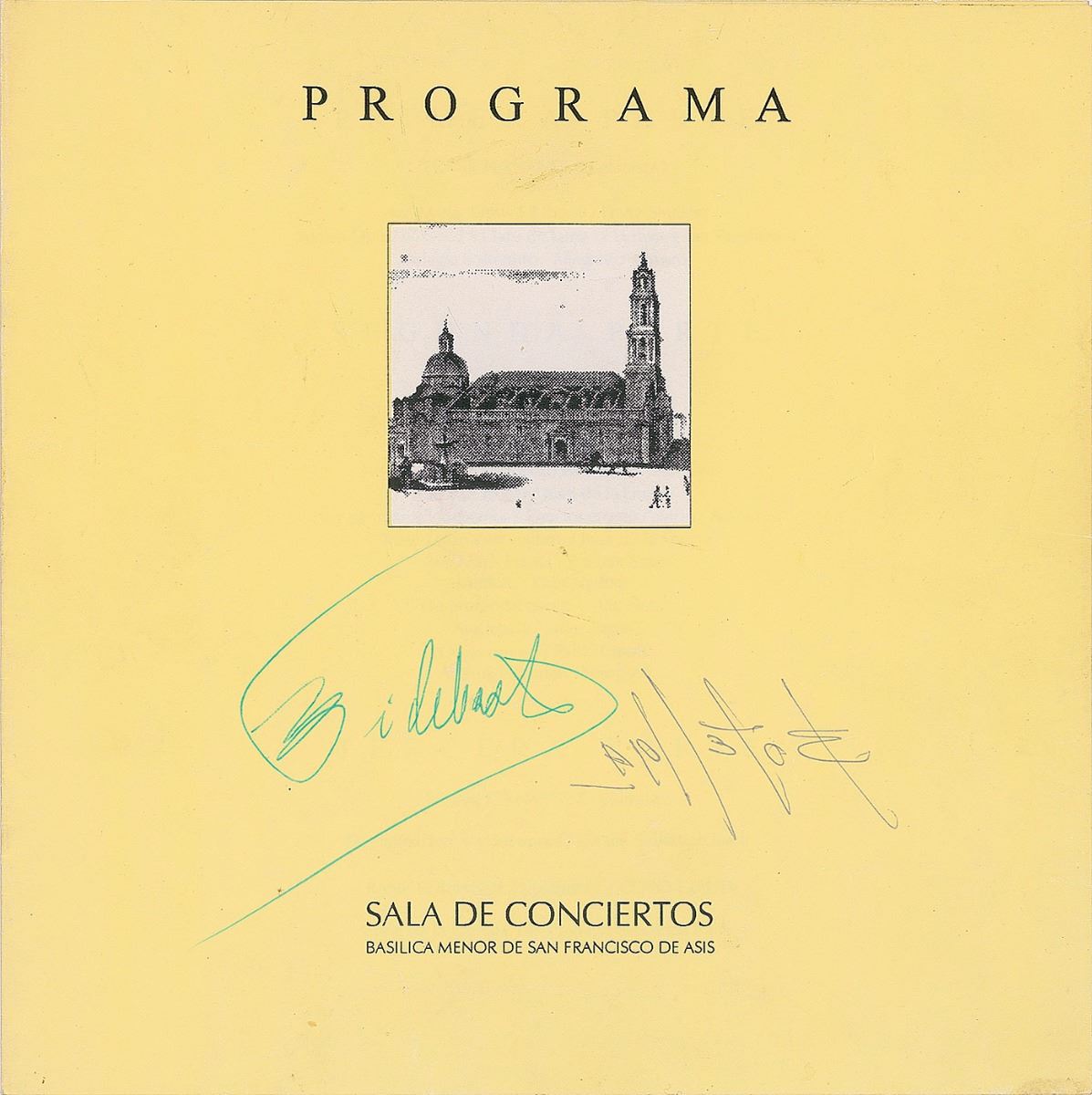 Program for a concert at the Basilica Menor de San Francisco de Asis, 8.75 x 8.75, two pages, signed on the front cover in green ballpoint by Castro. Also signed by an unknown hand. In fine condition, with scattered light creasing.