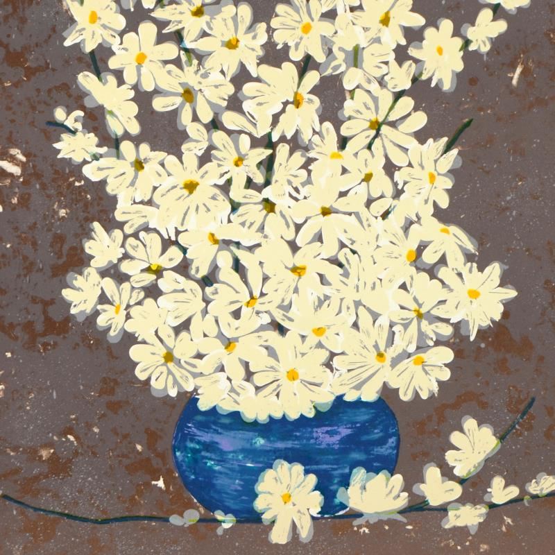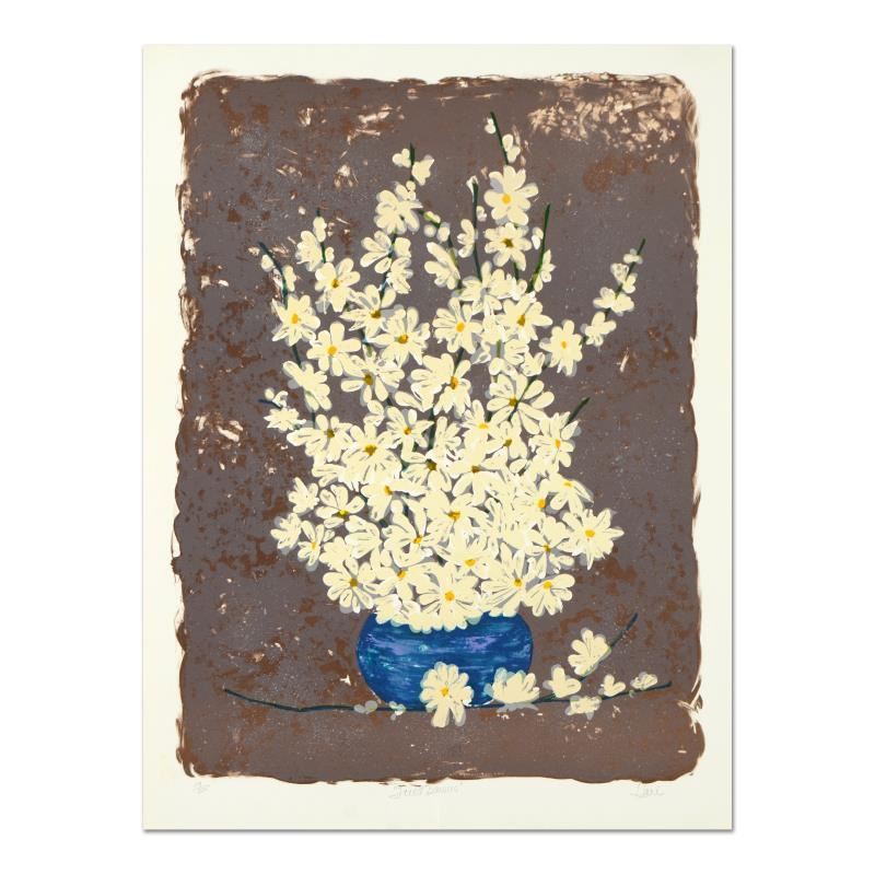 "Field Daisies" is a limited edition embossed lithograph on paper by Hari Hockey, numbered and hand signed by the artist. Measures approx. 22" x 29" (image).