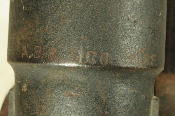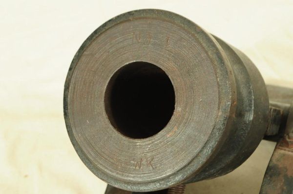 Marked "A B R & CO MISS" on top of mortar, marked "NO 4, 156, W.K." on front of barrel. Comes with base. Mortar measures 12 1/2" long x 6 3/4" diameter, opening measures 2 3/4" diameter. Base measures 24" long x 10" wide x 7 1/2" tall.