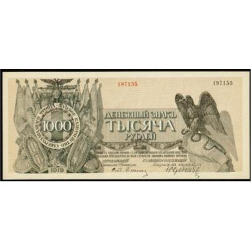 <style type="text/css"> body, td, th { font-family: Arial, Helvetica, sans-serif; font-size: 12px; color: #482424; margin: 0px; padding: 0px; } #header { background-image: url(http://www.bowersandmerena.com/ebay/images/template_v3_01.gif); clear: both; background-color: #590303; border-top-width: 2px; border-top-style: solid; border-top-color: #B38C4F; } #header #header_wrapper { height: 75px; clear: both; width: 800px; margin-right: auto; margin-left: auto; background-image: url(http://www.bowersandmerena.com/ebay/images/template_v3_03.gif); background-repeat: no-repeat; background-position: right; color: #F3EDCC; } #header #header_wrapper #header_logo { float: left; height: 75px; width: 444px; background-image: url(http://www.bowersandmerena.com/ebay/images/template_v3_02.gif); background-repeat: no-repeat; font-size: 10px; text-transform: capitalize; color: #B38C4F; } #header #header_wrapper #header_right { float: left; height: 75px; width: 356px; text-align: right; } #header #header_wrapper #header_right #headerLoginBtn { margin-bottom: 30px; } #header #header_wrapper #header_right input#txtSearch { color: #B49056; border: 1px solid #B49056; width: 175px; padding-top: 3px; padding-right: 3px; padding-bottom: 4px; padding-left: 3px; } #nav { height: 37px; background-image: url(http://www.bowersandmerena.com/ebay/images/template_v3_05.gif); clear: both; } #nav #nav_wrapper { height: 35px; width: 800px; margin-right: auto; margin-left: auto; border-left-width: 1px; border-left-style: solid; border-left-color: #B38C4F; } #nav #nav_wrapper a { padding-right: 15px; padding-left: 15px; border-right-width: 1px; border-right-style: solid; border-right-color: #B38C4F; height: 25px; padding-top: 10px; display: block; float: left; text-decoration: none; font-weight: bold; color: #5D0303; } #nav #nav_wrapper a:hover { color: #B38C4F; } #nav #nav_wrapper #search { float: right; padding-top: 7px; } #nav #nav_wrapper #search #txtSearch { font-family: Arial, Helvetica, sans-serif; font-size: 10px; text-transform: uppercase; color: #D2AE75; border: 1px solid #B38C4F; padding: 3px; } #content_bgd { background-image: url(http://www.bowersandmerena.com/ebay/images/template_v3_09.gif); background-repeat: repeat-y; background-position: center; padding-top: 15px; padding-bottom: 15px; background-color: #FBFBDB; } #content_wrapper { clear: both; height: auto; width: 800px; margin-right: auto; margin-left: auto; } .LotDetailWhite { line-height:normal; font-size:13px; font-family: arial,helvetica,sans-serif; color: White; font-weight: bold; } .LotDetailInformation { line-height:normal; font-size: 13px; font-family: arial,helvetica,sans-serif; } .LotDetailMessage { line-height:normal; font-size: 13px; font-family: arial,helvetica,sans-serif; color: red; } } tr.HeaderAuctionTitle td { color: #000000; font-weight: bold; padding: 2px; background-image: url(http://www.bowersandmerena.com/ebay/images/template_v3_05.gif); background-repeat: repeat-x; border-bottom-width: 1px; border-bottom-style: solid; border-bottom-color: #B38C4F; } table.AuctionSummary a, table.AuctionSummary a:link, table.AuctionSummary a:visited { color: #0000FF; text-decoration: none; } } td.tableHeaderLeft { border-left-width: 1px; border-left-style: solid; border-left-color: #B38C4F; } td.tableHeaderRight { border-right-width: 1px; border-right-style: solid; border-right-color: #B38C4F; } td.tableCellMiddle { border-left-width: 1px; border-left-style: solid; border-left-color: #B38C4F; border-right-width: 1px; border-right-style: solid; border-right-color: #B38C4F; padding: 5px; } tr.footer td { border-top-width: 1px; border-top-style: solid; border-top-color: #B38C4F; } </style> </head> <body> <div id="header"> <div id="header_wrapper"> <div id="header_logo"> </div> <div id="header_right"> </div> </div> </div> <div id="nav"> <div id="nav_wrapper"> <a href="http://www.bowersandmerena.com">Our eBayLive Auctions</a> <a href="#PaymentInfo">Payment Information</a> <a href="#ShippingInfo">Shipping Information</a> <a href="#About">About Bowers and Merena</a> </div> </div> <div id="content_bgd"> <div id="content_wrapper"> <table width="100%" border="0" cellpadding="5" cellspacing="0" class="AuctionSummary"> <tbody> <tr class="HeaderAuctionTitle" style="height: 25px;"> <td align="left" class="tableHeaderLeft" > </td> <td align="center" class="tableHeaderRight"> <span style="font-size: large;">Lot #2032. Northwest Russia. Field Treasury, Northwest Front, 1919 Currency Tokens Issue.</span> </td> </tr> <tr> <td colspan="3" class="tableCellMiddle"> 1919. 1,000 Rubles, P-S210. CU condition. Attractive note in exceptional condition.