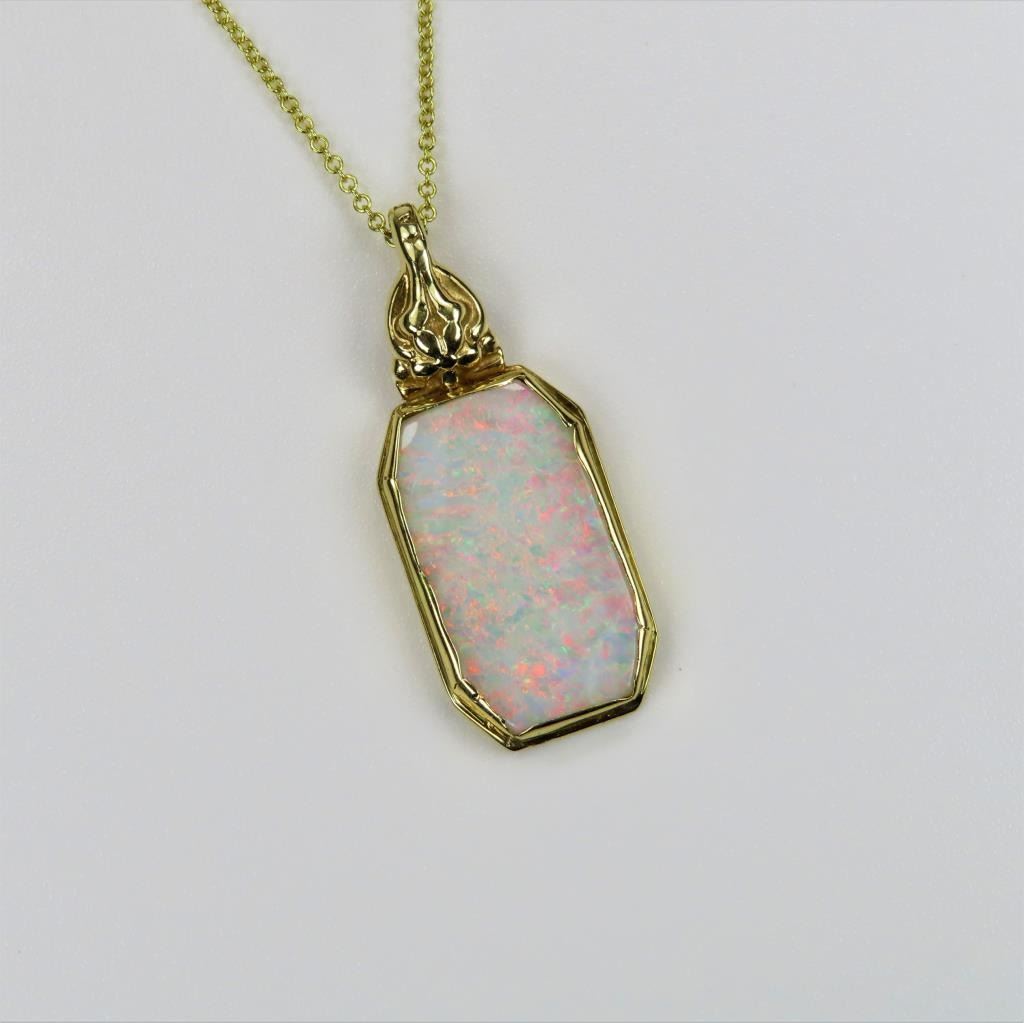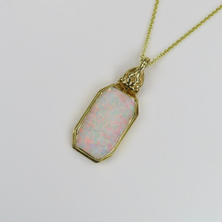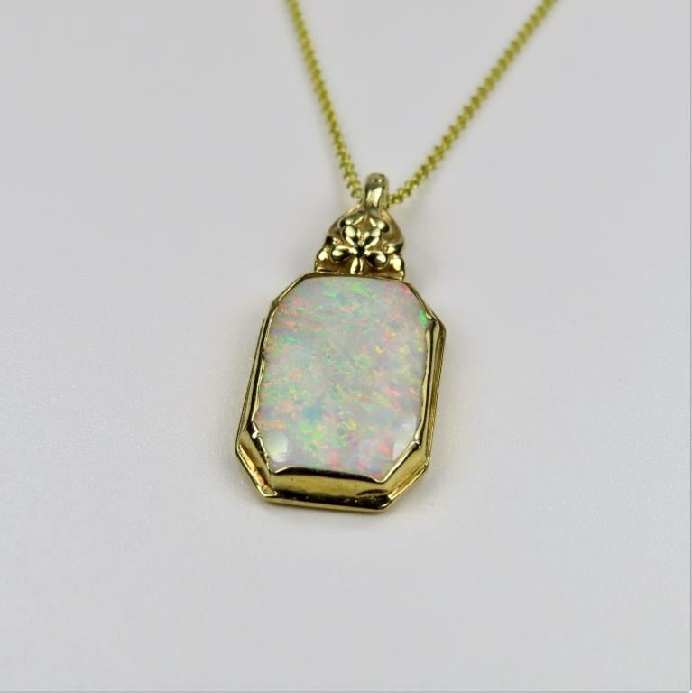 weighing approx. 6.00 carats with intense full spectrum color flashes set in a hand-crafted antique setting hand crafted in 14 and 18 karat yellow gold. Retail $3,000-$4,000