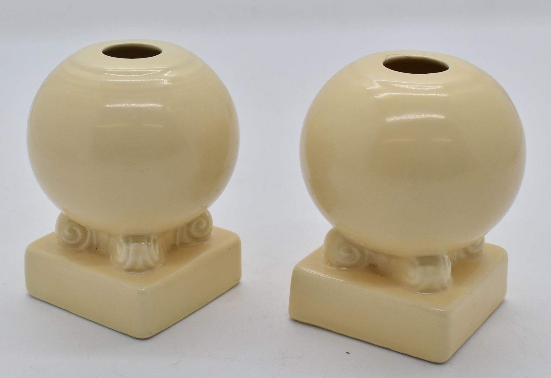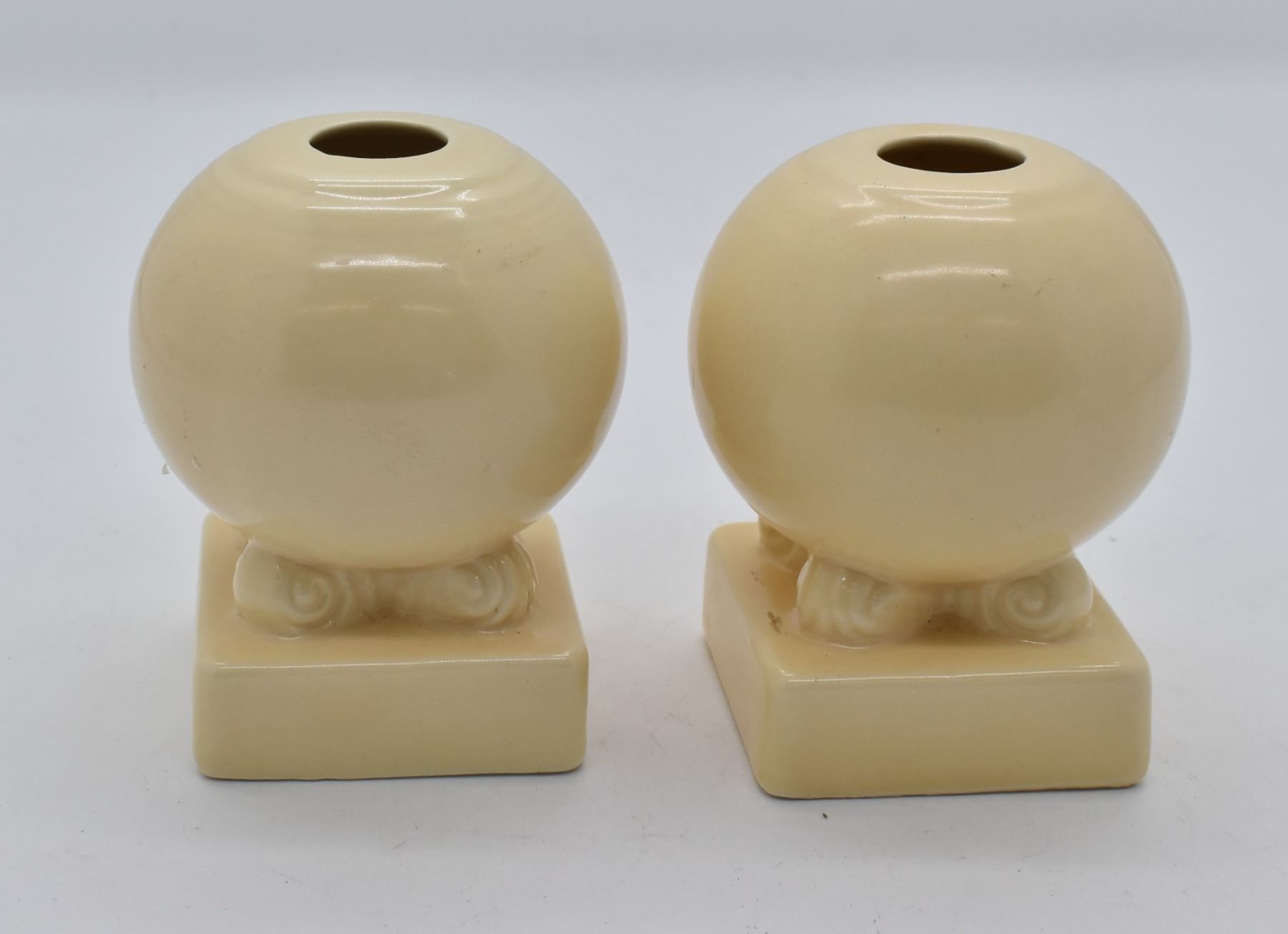 Pair of Fiesta Old Ivory Bulb Type Candleholders, ca. 1944-1951, discontinued production of the bulb type candleholders in 1946, old ivory was one of the six original colors which was discontinued in 1951, mint condition