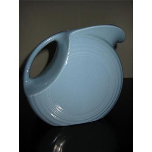 Fiesta Picther signed, stamped. made in the U.S.A. and quite attractive as well as hard to find. it is vintage w beautiful blue color. fine pottery. in excellent condition and measures about 7.5 x 7.5 inches w 4.24 inches deep. very collectible and contemporary decorative.