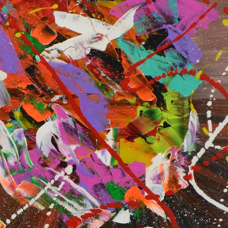 "Fiesta" is a hand signed original acrylic painting on canvas by George Marlowe. This piece comes gallery wrapped and includes a Certificate of Authenticity. Measures approx. 24" x 30".