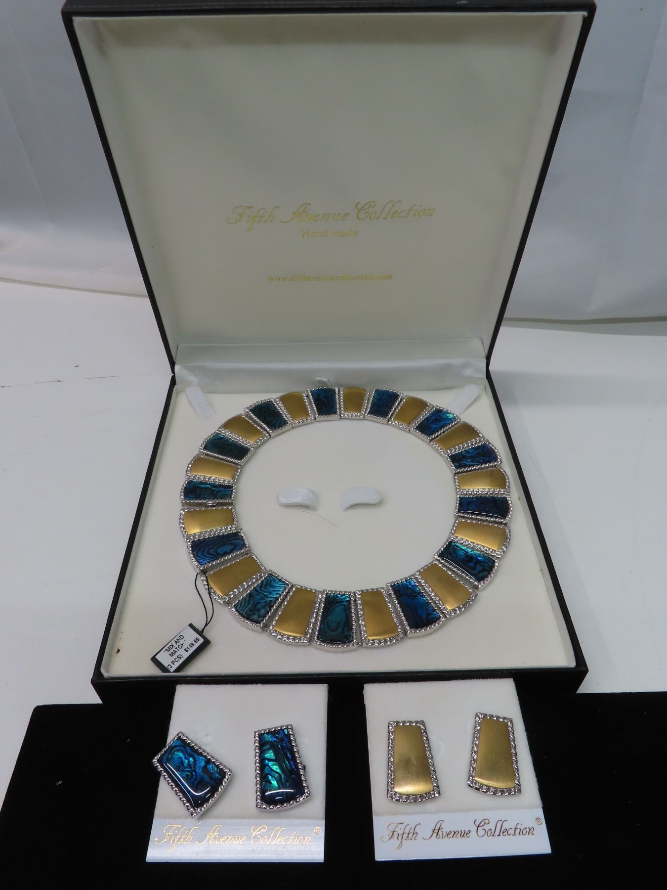 Fifth Avenue Collection Hand Made Necklace & 2 sets of Earrings – Genuine Paua Shell