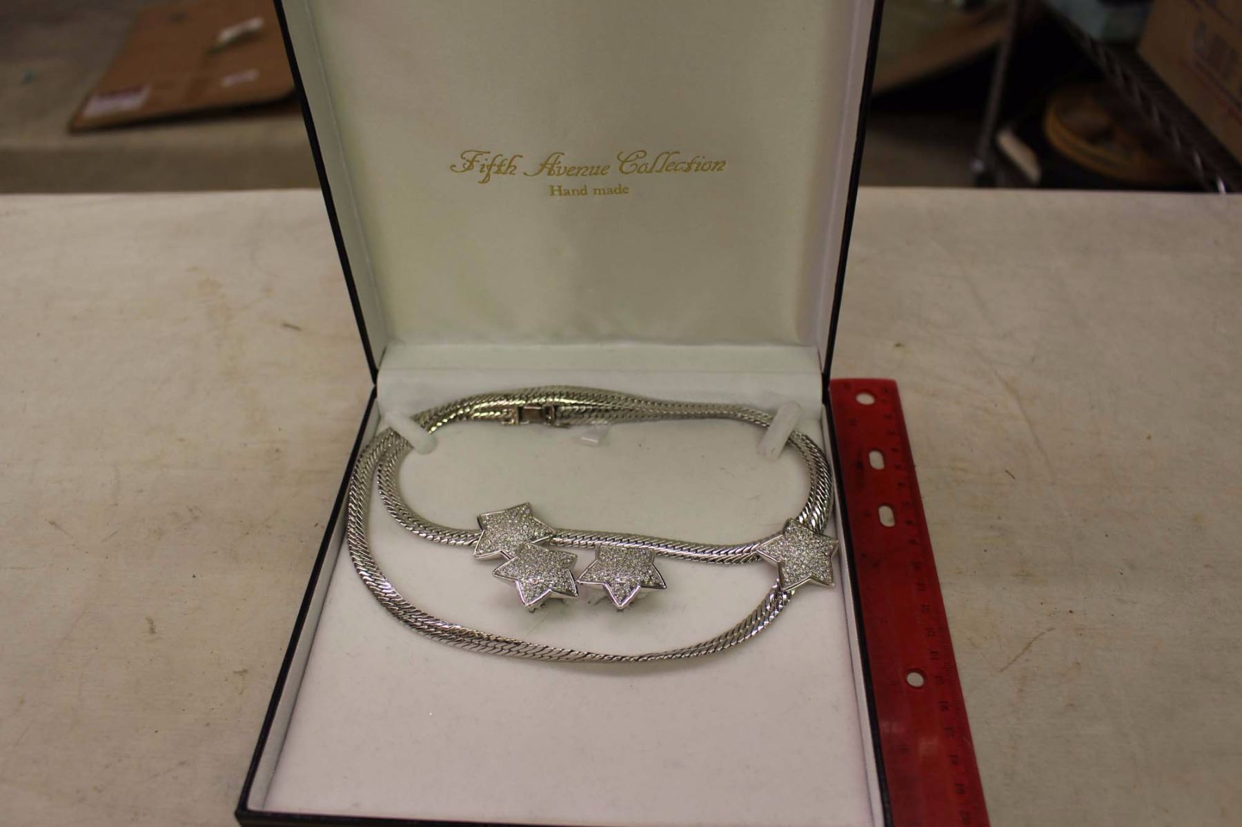 Fifth Avenue Handmade Necklace w/Matching Earrings (Rhinestone)