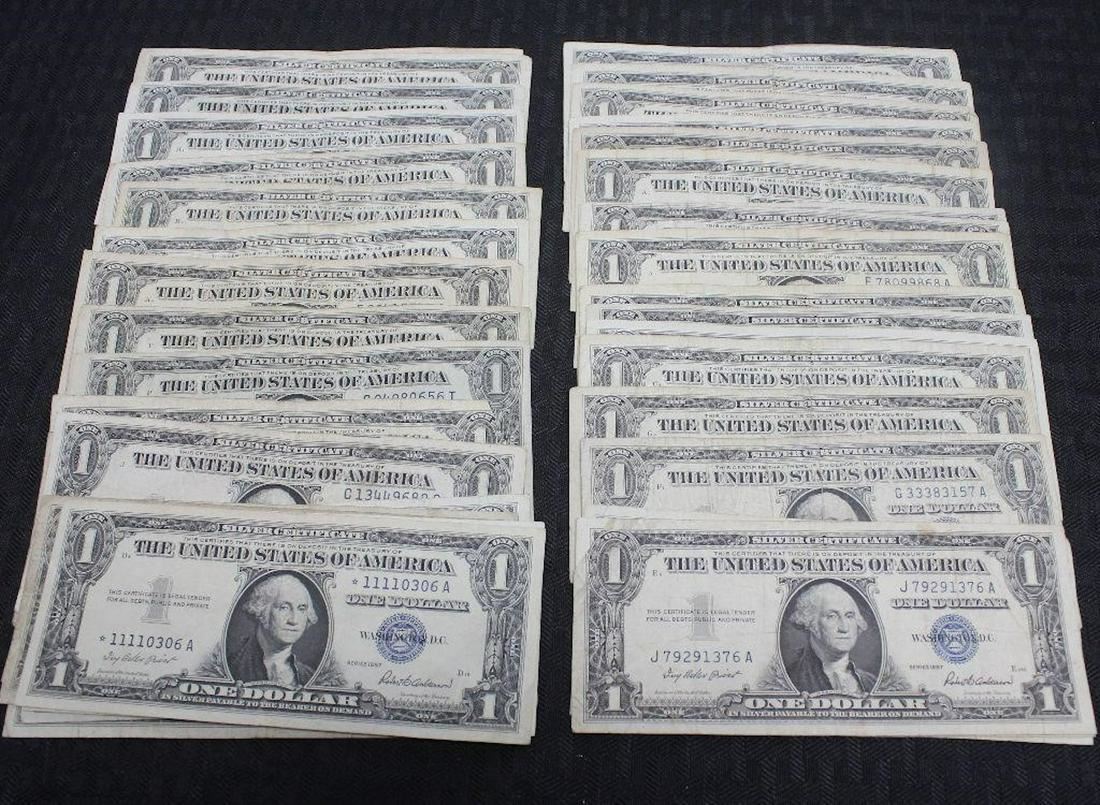Fifty (50ct) Lot of Circulated Silver Certificates. Dated 1935-1957. some star notes in this lot.