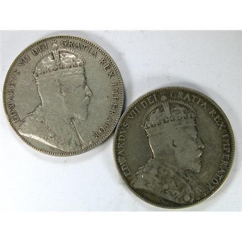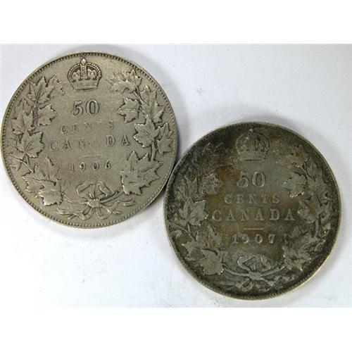 Canada Fifty Cents 1906 and 1907, both F-VF. Lightly toned