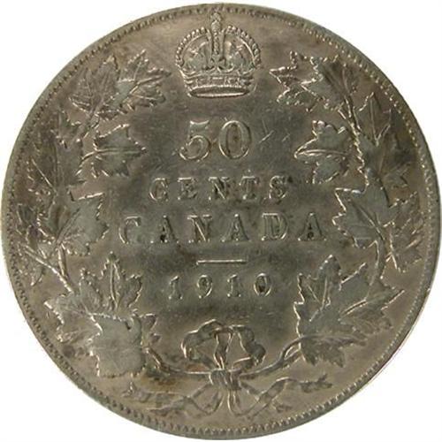 Canada Fifty Cents 1910 Edwardian Leaves, VF. Light toned