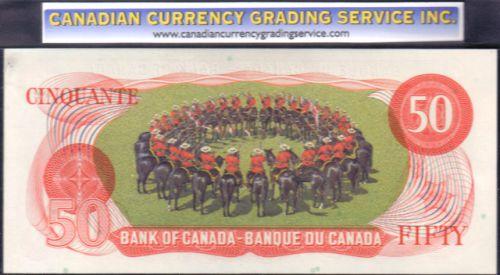 Bank of Canada Fifty Dollars 1975, Lawson-Bouey, BC-51a Serial Number HA0000700, CCGS Unc 65. This certified Gem Uncirculated example was a presentation piece to an officer in the RCMP in 1975