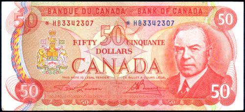 Bank of Canada Fifty Dollars 1975, Lawson-Bouey, BC-51aA Serial Number *HB3342307, EF