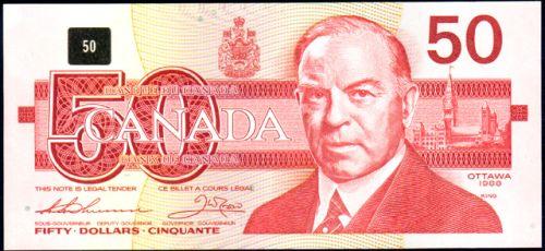 Bank of Canada Fifty Dollars 1988, Thiessen-Crow, BC-59a Serial Number FHE9330204, Uncirculated
