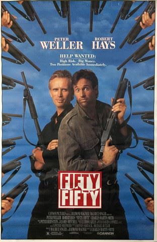 Fifty/Fifty (Cannon Pictures, 1992). One Sheet. Starring: Peter Weller and Robert Hays. There are folds, creases, paper loss and edge wear damage. Very Fine. (27" X 40").