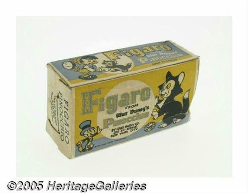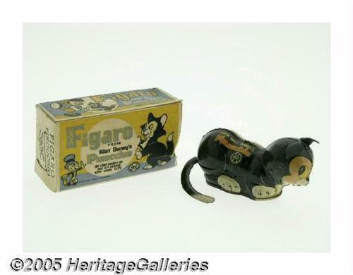 <B>Figaro Wind Up Tin Cat with Box (Marx, 1939).</B></I> Inspired by Walt Disney's "Pinocchio," the craftsmen at Louis Marx & Company created this charming wind up tin cat, complete with original box. Produced in 1939, both the cat and the box are in Excellent condition. <I>From the Larry Jacobs Collection.</B></I>