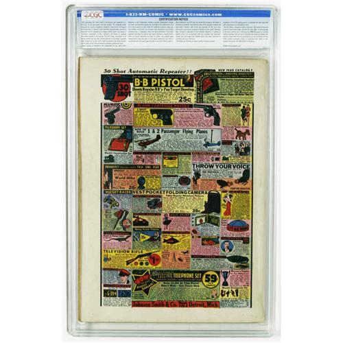48C. COMICS – Comic books sold referencing a third-party grading service are sold "as is" without any express or implied warranty. Certain warranties may be available from the grading services and the Bidder is referred to them for further details: Comics Guaranty Corporation (CGC), P.O. Box 4738, Sarasota, FL 34230. Subject to sections 57 and 58, bidders who intend to challenge authenticity or provenance of a lot must notify Auctioneer in writing within thirty (30) days of the Auction's conclusion. Auctioneer's maximum liability shall not exceed the high bid on that lot, which bid shall be deemed for all purposes the value of the lot. In the event Auctioneer cannot deliver the lot or subsequently it is established that the lot lacks title, provenance, authenticity, or other transfer or condition issue is claimed, Auctioneer's liability shall be limited to recission of sale and refund of purchase price. After one year has elapsed, Auctioneer's maximum liability shall be limited to any commissions and fees Auctioneer earned on that lot.