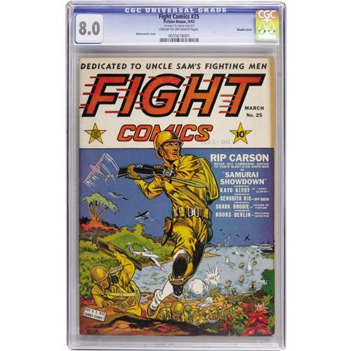 <B>Fight Comics #25 Double Cover (Fiction House, 1943) CGC VF 8.0 Cream to off-white pages.</B></I> Dan Zolnerowich drew this issue's hard-hitting war cover. CGC notes, ""1st cover 7.0, interior cover 8.0."" Overstreet 2006 VF 8.0 value = $192. CGC census 3/07: 1 in 8.0, 1 higher.<BR><BR><b>Shipping:</b> Comics - Slabbed (certified) (<a target=""_blank"" href=""http://www.heritageauctions.com/common/shipping.php"">view shipping information</a>)