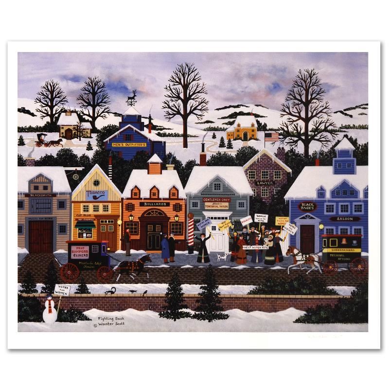 Cozy, down-home images of a bygone era when life was simpler - this is the feeling captured in the creations of one of the world's most recognized artists. "Fighting Back" is a limited edition lithograph on paper, numbered and hand signed by Wooster Scott! Includes Certificate of Authenticity! Measures approx. 24.5" x 20.5" (with border), 22.5" x 18" (image).