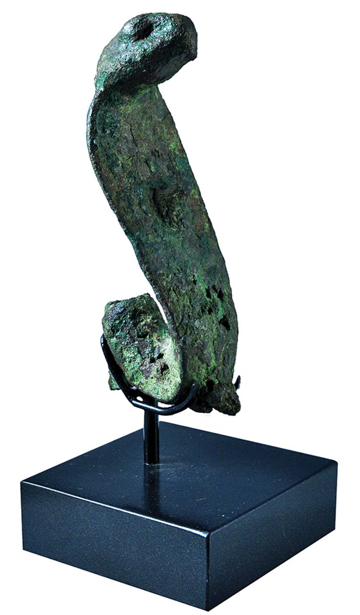 Figura representando cobra. Baja época (alrededor del 664-323 a.C.). Bronce. Seguramente perteneció a una escultura en madera de gran formato de Osiris como elemento decorativo de su frente. Altura 10,0 cm.