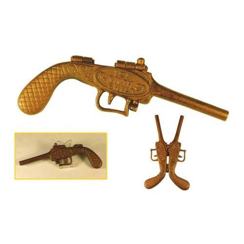 Cast Iron Figural Boot Jack in the shape of a gun. Advertising Our 3s Shoes, Philadelphia, PA. Excellent condition. 9 inches long.