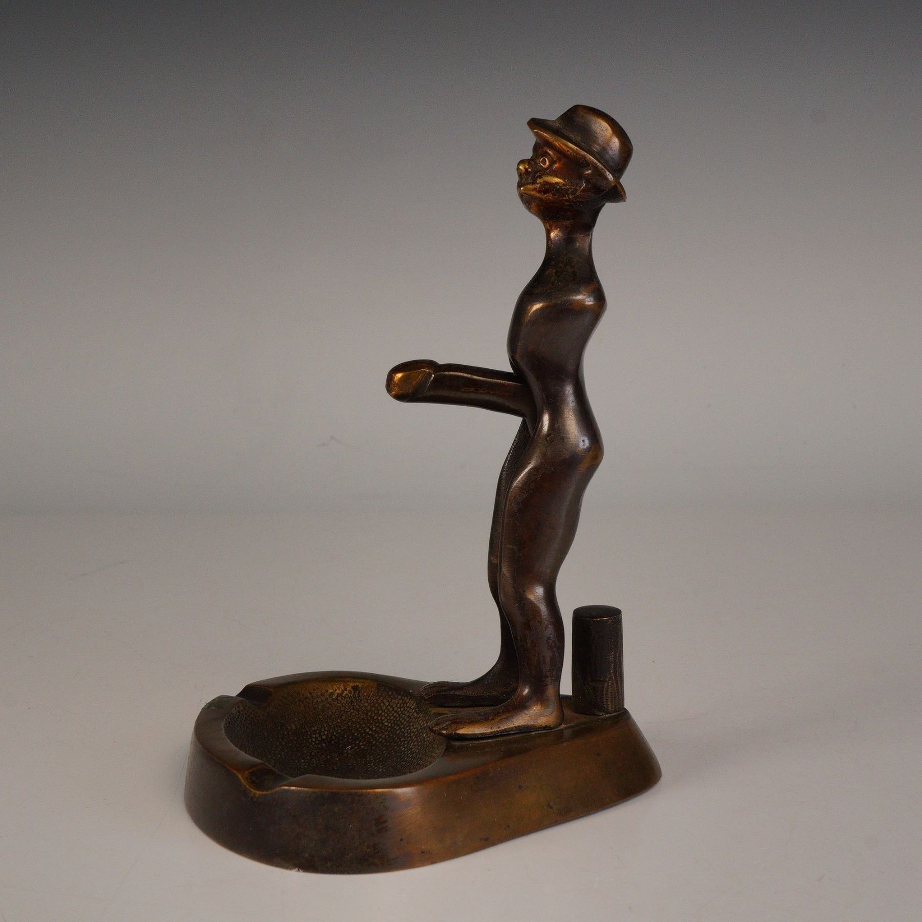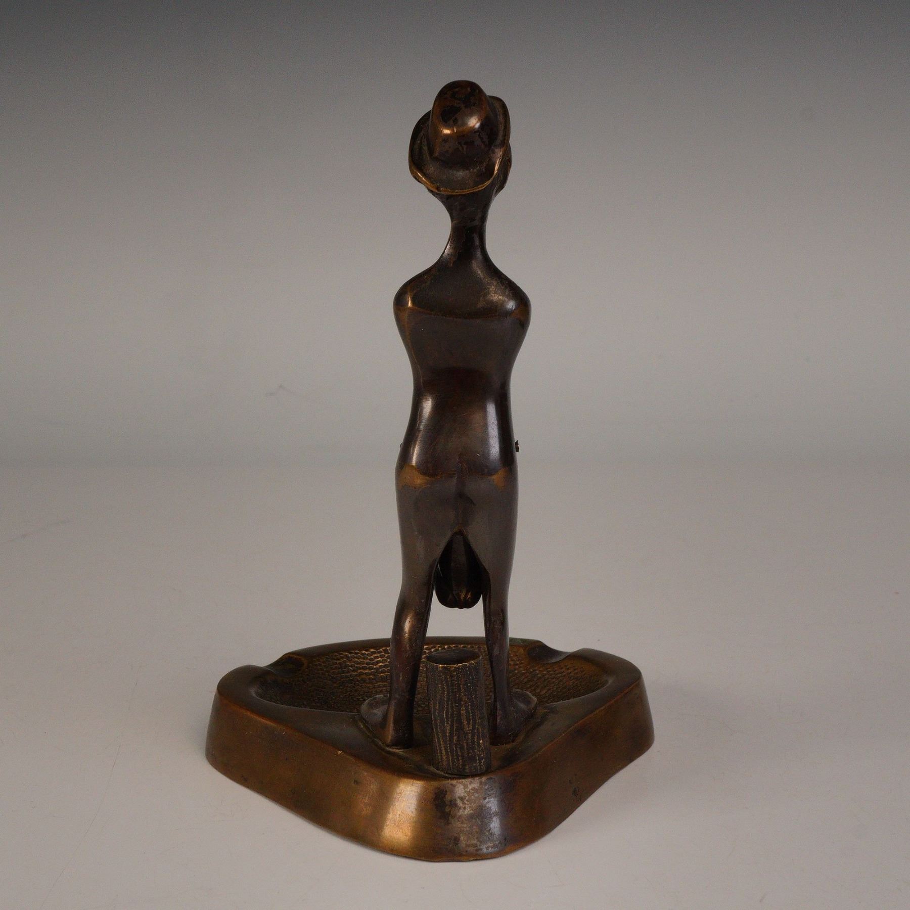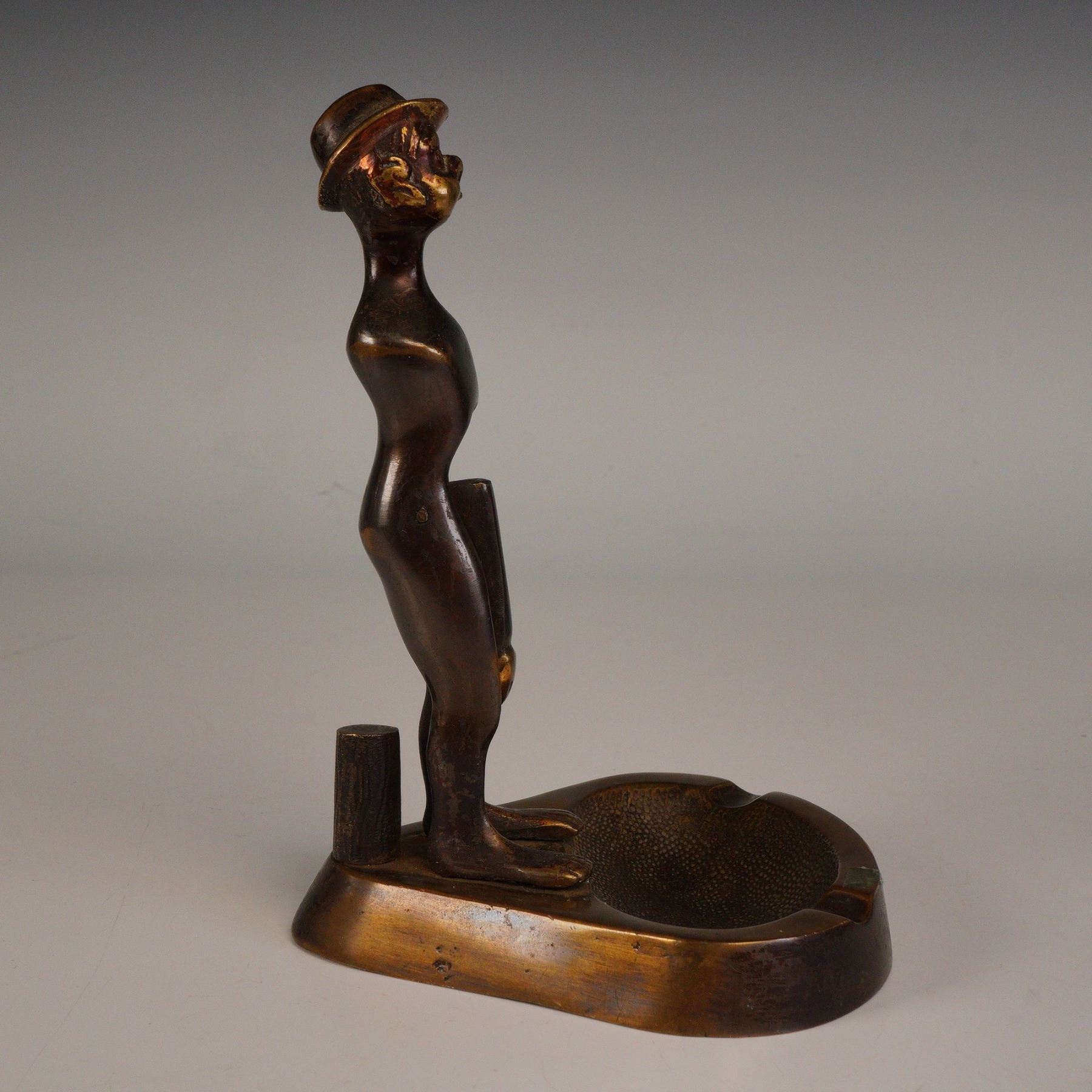 Figural Bronze Ashtray with Standing Man Form