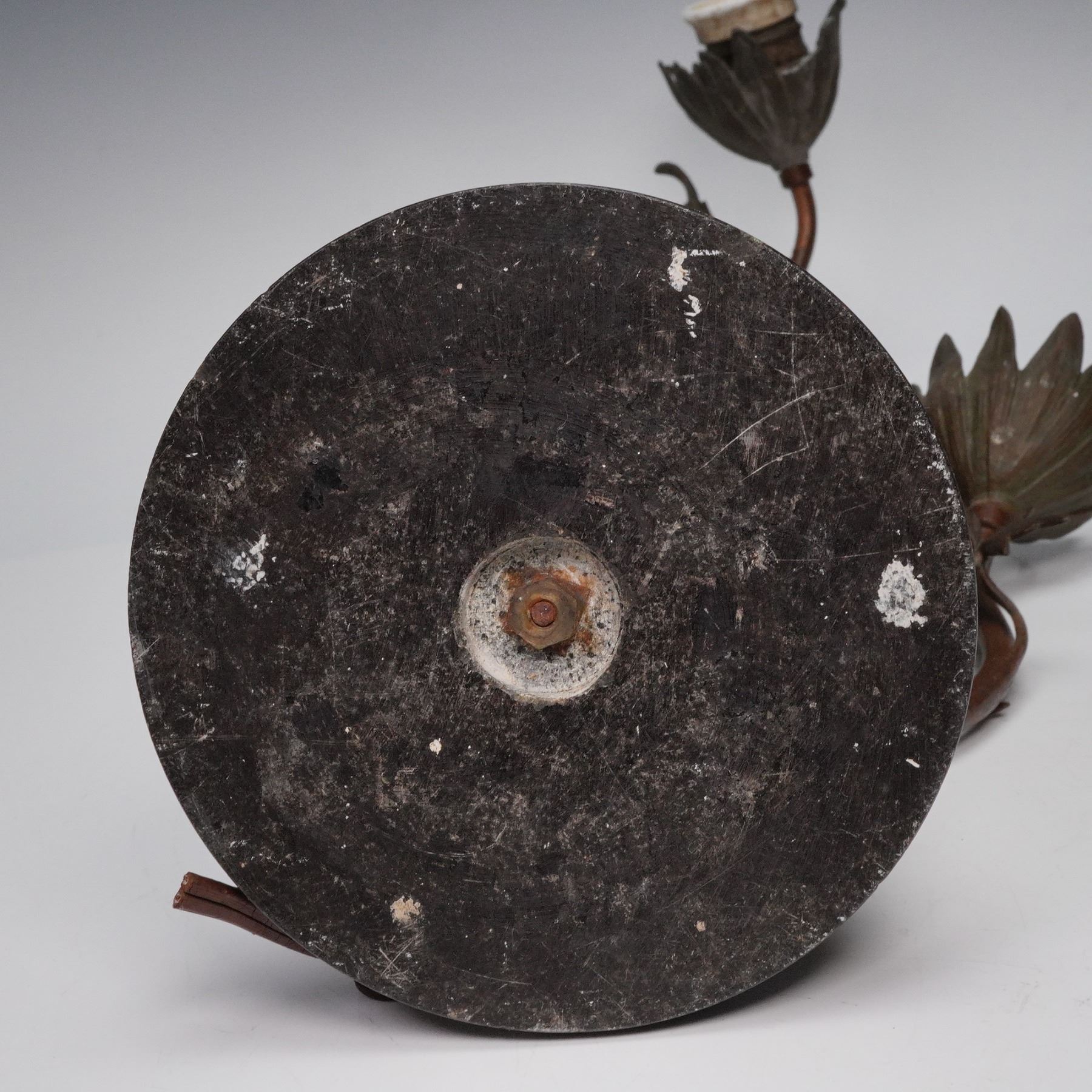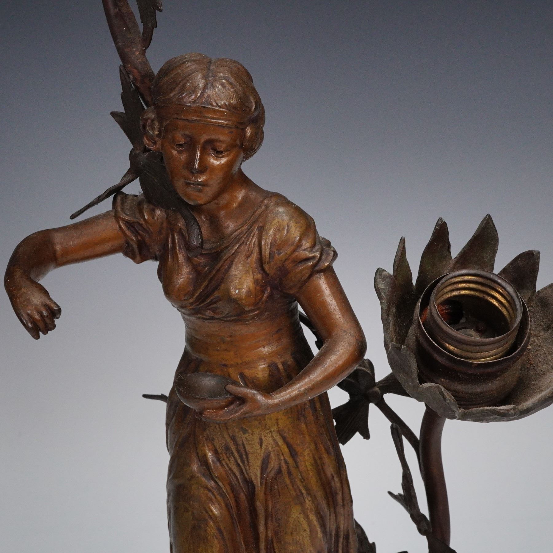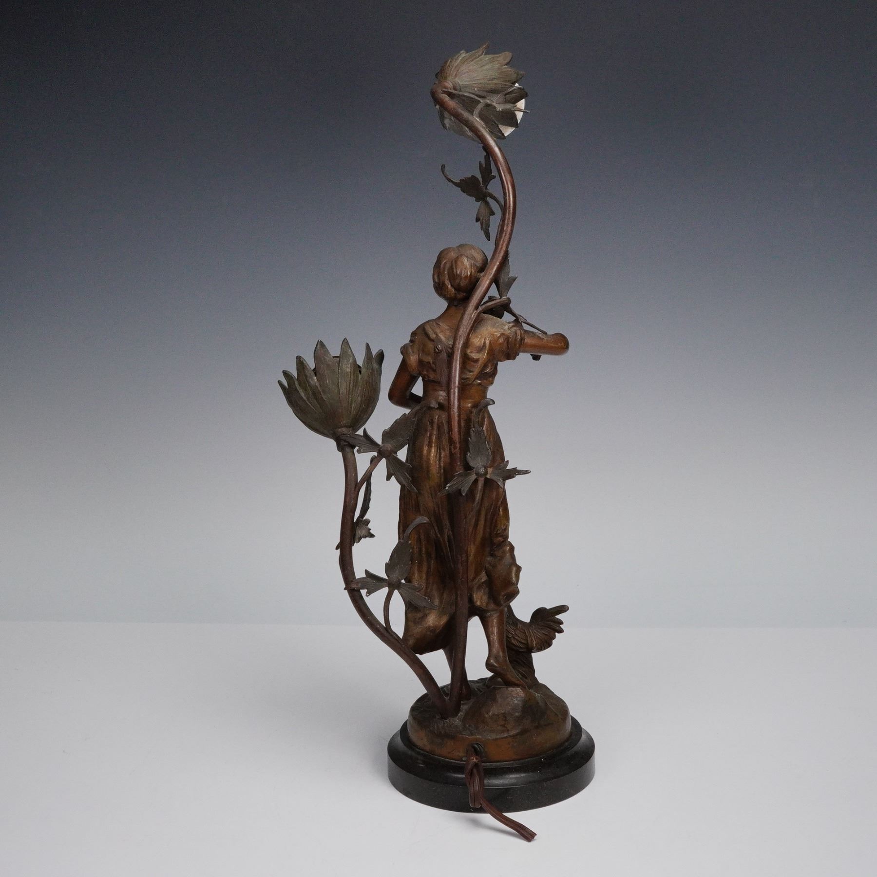 Figural Bronze-Tone Table Lamp with Floral Sockets on Marble Base