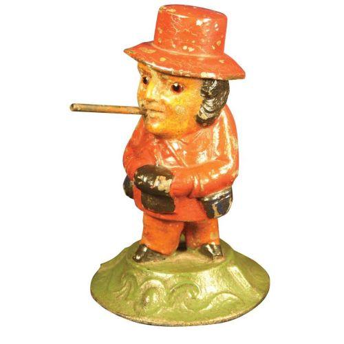 Figural cigar lighter, enameled pot metal. Good original condition. 4 3/4 inches tall.
