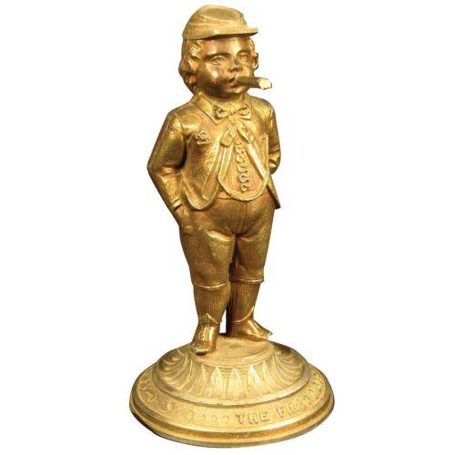 Figural cigar lighter, pot metal entitled the first cigar. Very good condition. 6 3/4 inches tall.
