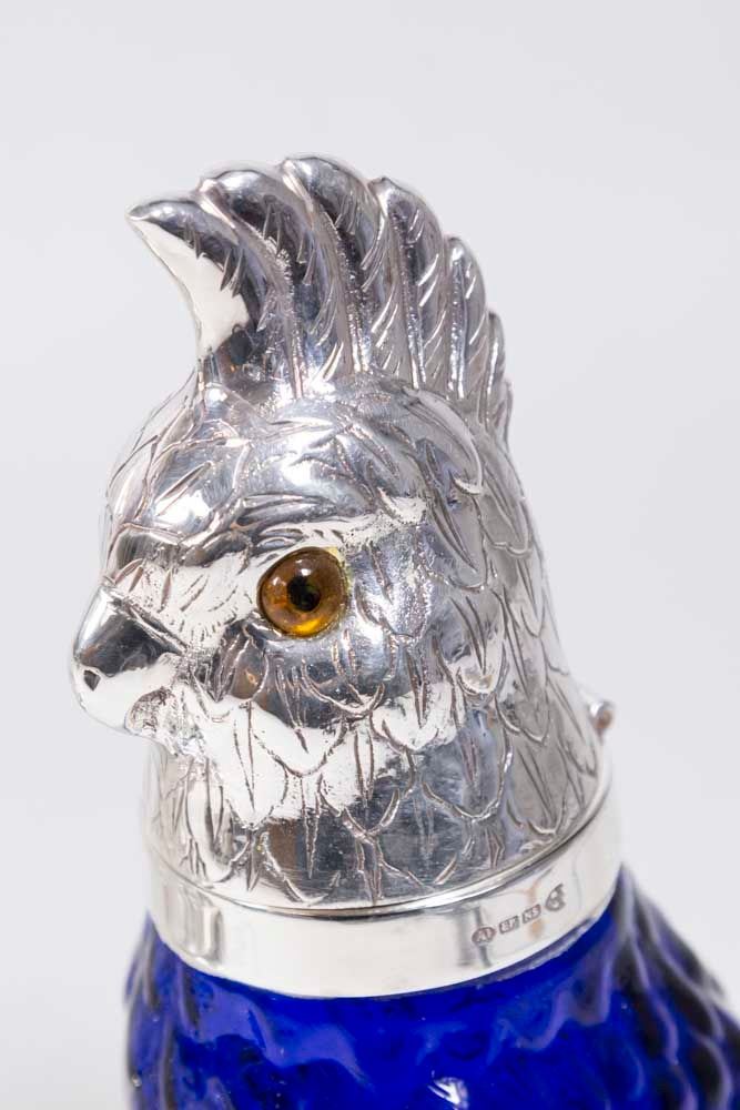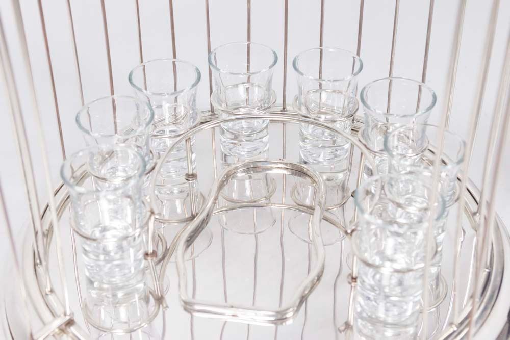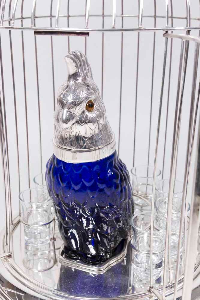 Contemporary. With glasses. Bird approx. 10" H. Cage approx. 18" H.