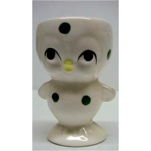 Pretty vintage figural egg cup it depitcs cute tiny chick wearing green and black dots, Cute Face!, Excellent condition, free of chips or cracks, Measures about 3 1/4" high, US Buyer please pay 7.00 for insured shipping.Thanks For Looking!