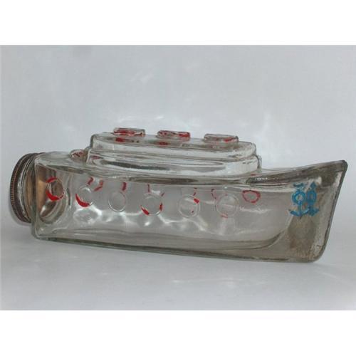 <tr><td>Title:Figural Glass Flask Boat Candy Container Ca.</td></tr>