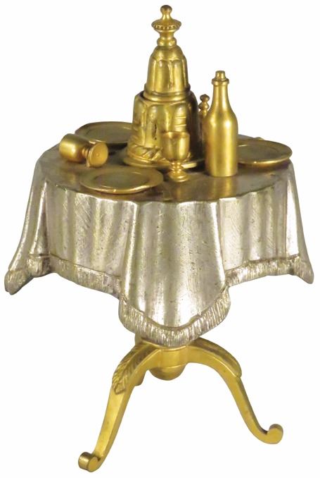 Figural Store Bell, Table Setting. White metal, good working condition. 3 inch dia. X 5 3/4 inches tall.
