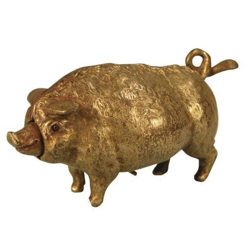 Figural store call bell in the shape of a pig, key wind. Activate by pushing down tail or nose. Nickel plated cast iron, excellent working condition. 7 X 4 X 3 1/2 inches.