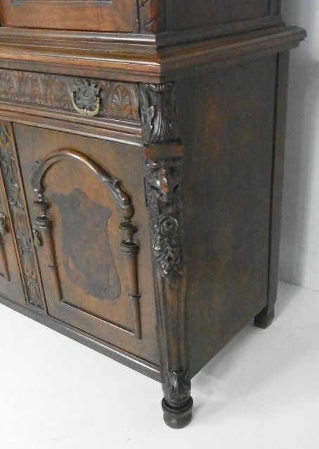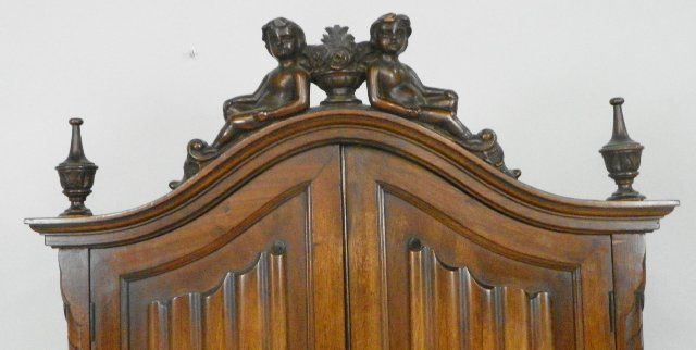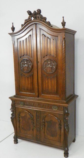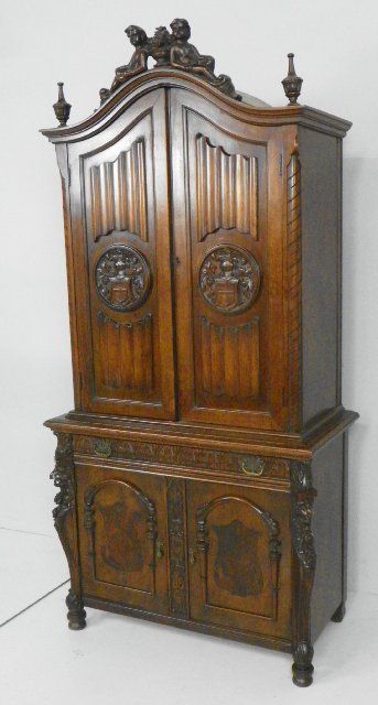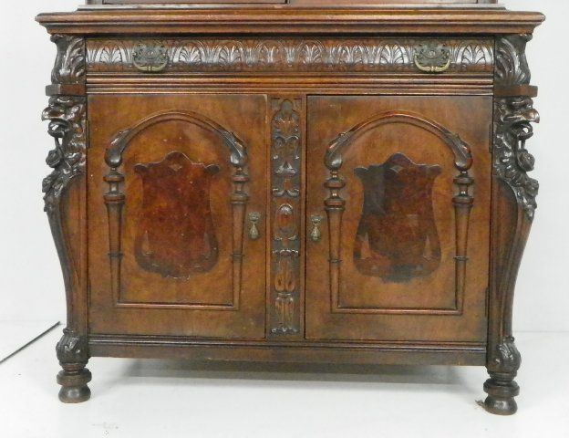 With full figured & carved "Urn of Flowers" atop, carved "Griffon" on sides. Approx. 74.5" x 3' W x 18.5" D. Please read our terms of sale.