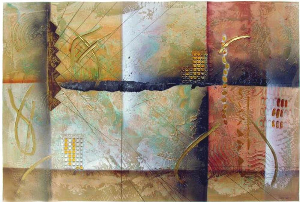 Chris Hill | Title of Art: Gold Abstract Cubes | Medium: Hand Signed by the Artist Original Painting on Paper | Edition Size: Original | Unframed Size: 24 x 36 inches | Offered Unframed